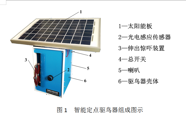 6、安裝完畢后使用時,向下扳動圖1中的總開關(guān),打開驅(qū)鳥器,可以用手遮擋一次圖1中的光電感應傳感器,測試驅(qū)鳥器功能是否正常。