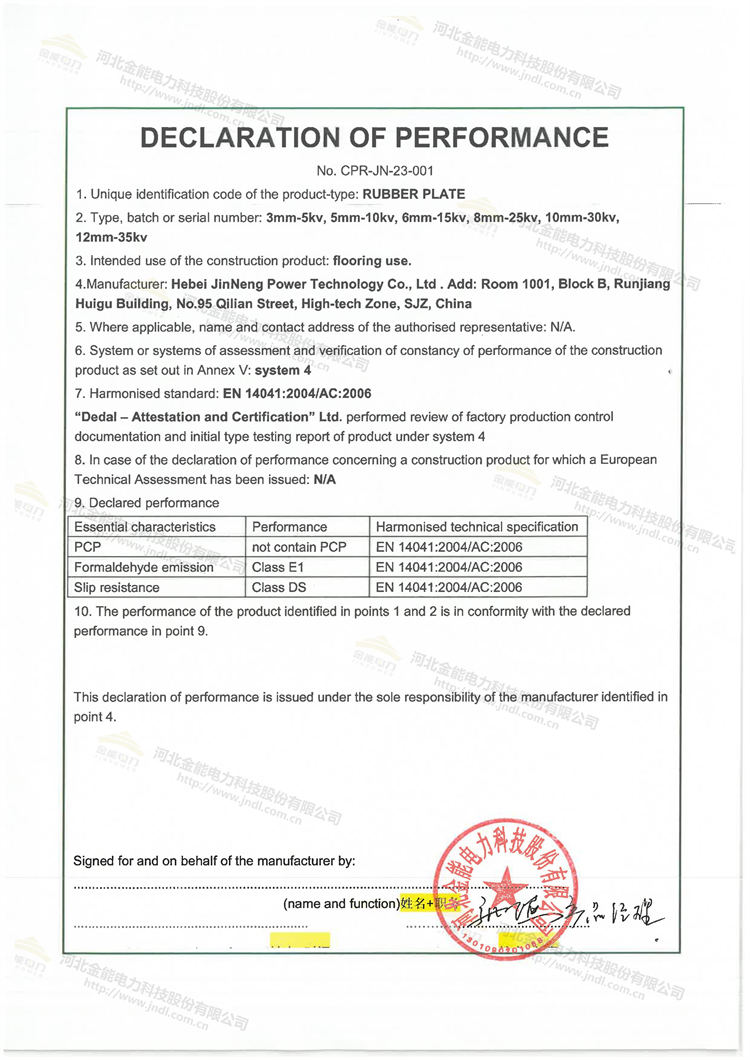 金能絕緣膠墊完成歐盟CE認(rèn)證,通過(guò)歐標(biāo)E1級(jí)環(huán)保標(biāo)準(zhǔn)